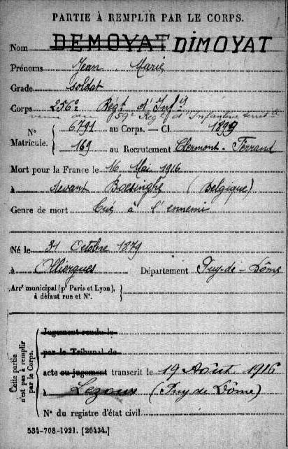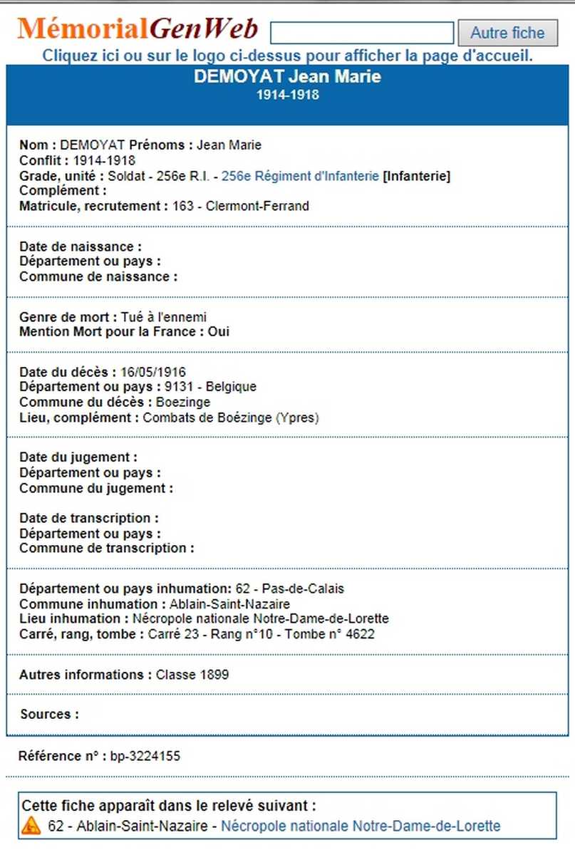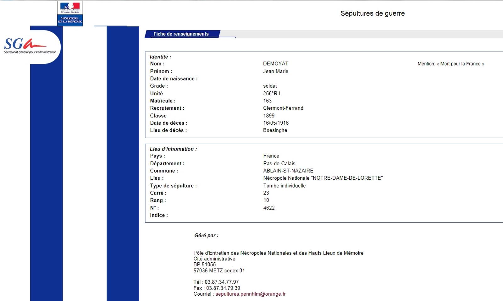 Genre de décès : Tué à l`ennemi