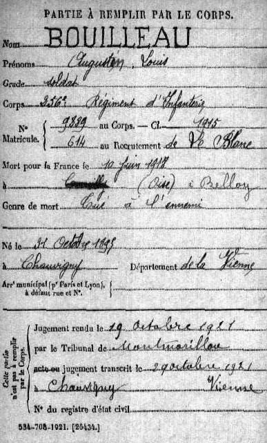 Inscrit BOUILLAUD Auguste sur le Monument aux Morts