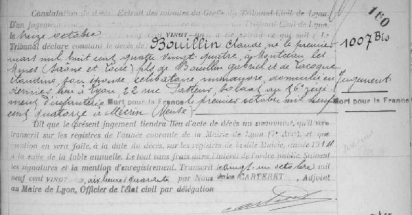 Domicilié en dernier lieu 22 rue Pasteur à Lyon 1er (69).
