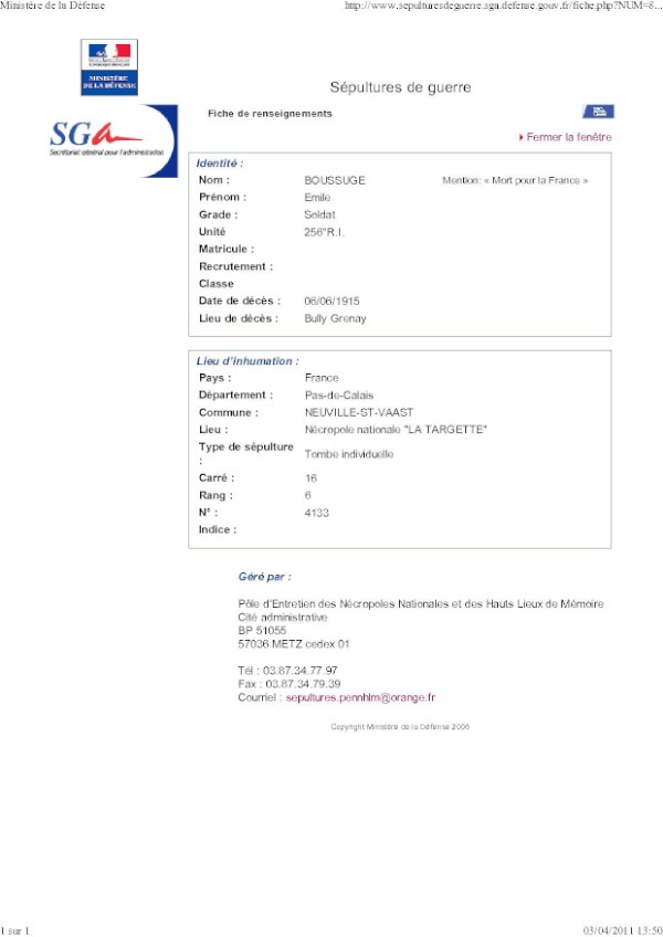 Père : BOUSSUGE Claude Marie