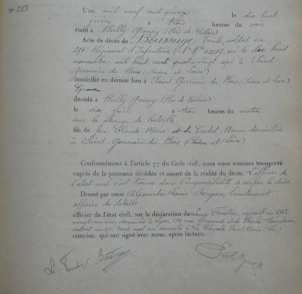 Lieu de décès : Bully-Grenay