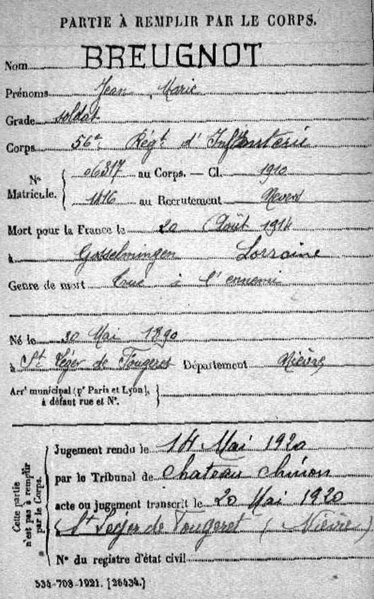 Inscription sur le monument : Saint-Léger-de-Fougeret (58)