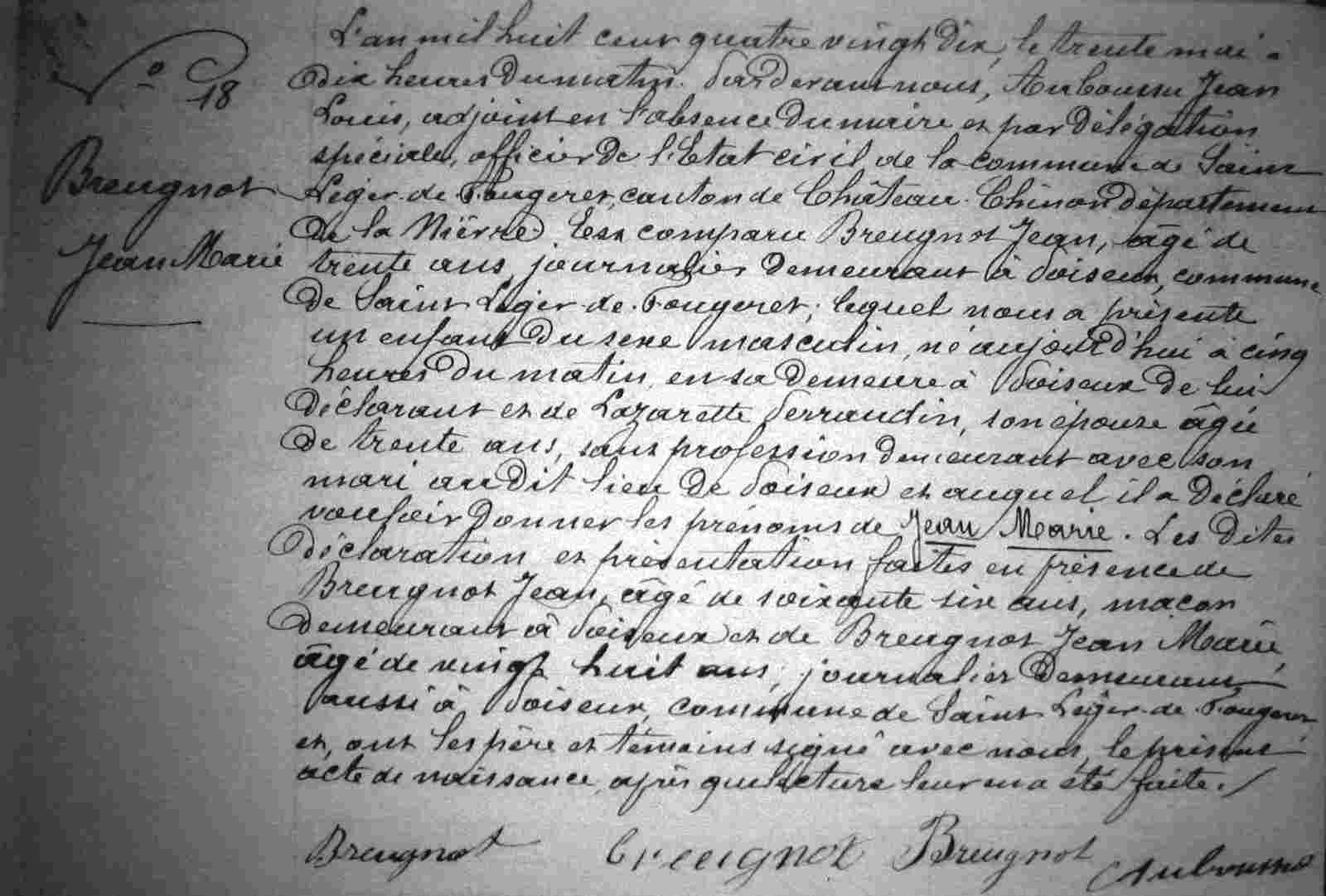 Lieu de naissance : Saint-Léger-de-Fougeret