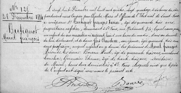 Père : BUTIGNOT François Xavier