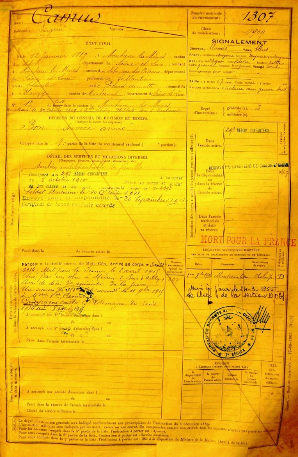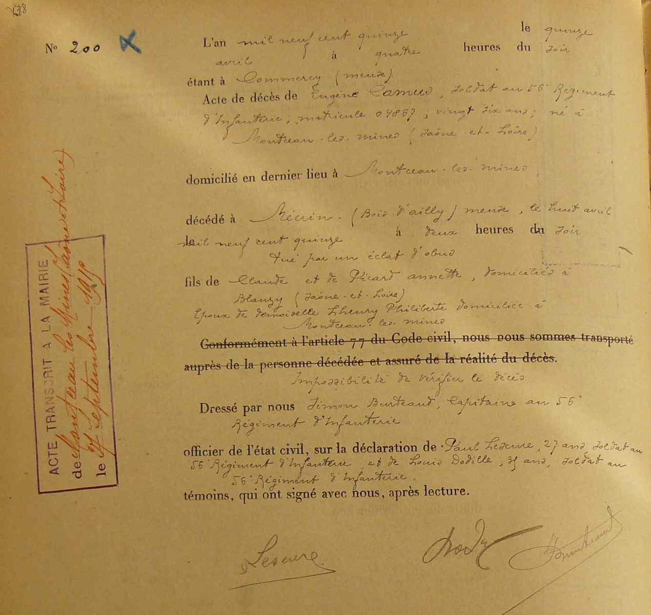 Epouse : LHENRY Philiberte (Marié Montceau les Mines (71) le 30-10-1909)