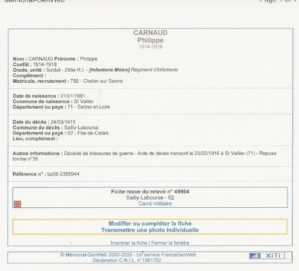 Sépulture : Carré militaire de Sailly-Labourse (62)