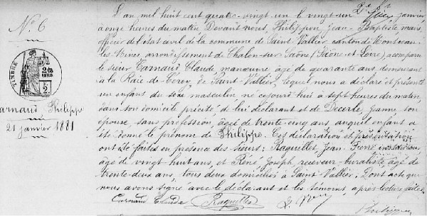 Celibataire.Ascendant vivant Mr Carnaud Claude.