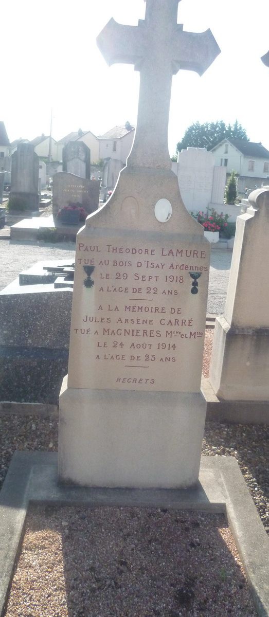 Un rappel à la mémoire est gravée sur la tombe du Soldat Paul Théodore LAMURE, au cimetière de l'Ouest de Chalon-sur-saône (71).