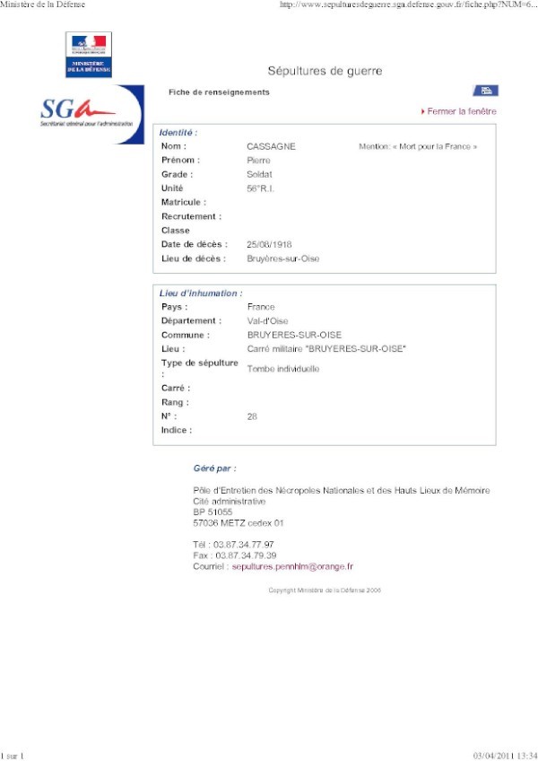 Sépulture : Carré militaire de Bruyères-sur-Oise (78)