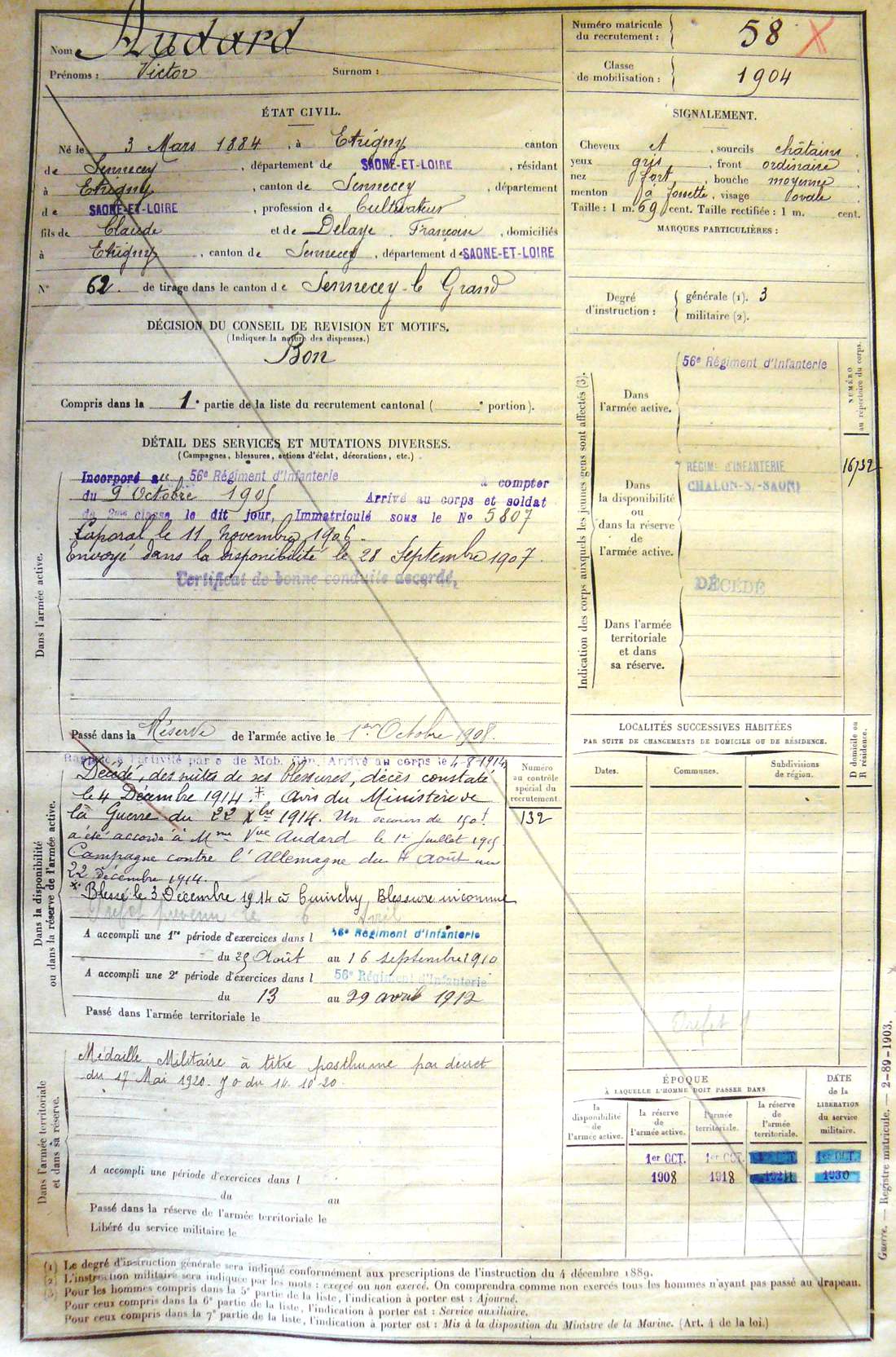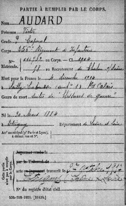 Un secours de 150 F a été accordé à Mme Vve AUDARD le 01/07/1915