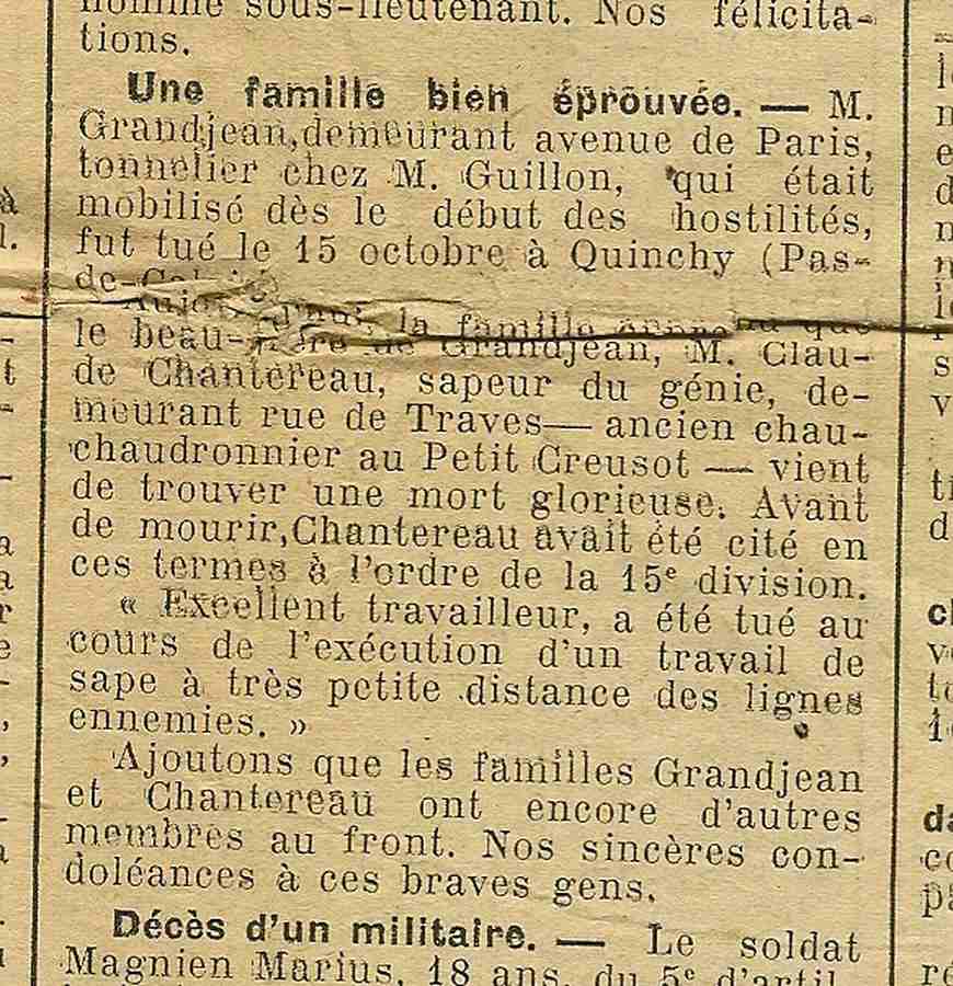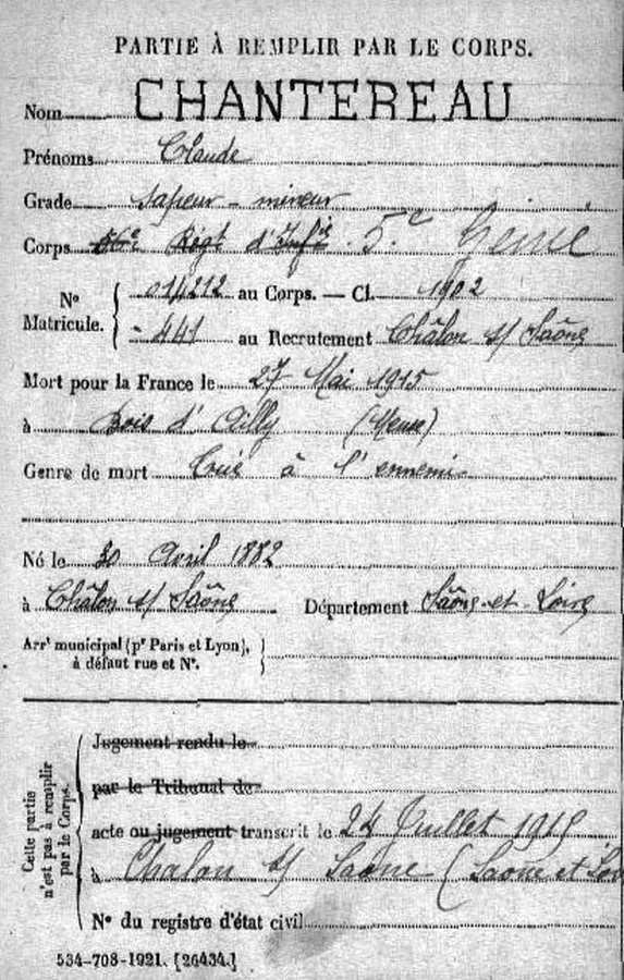 Il est important de reprendre pour ce soldat MDH - SDG - RP en fonction des différences liées au régiment à la date de la mort,