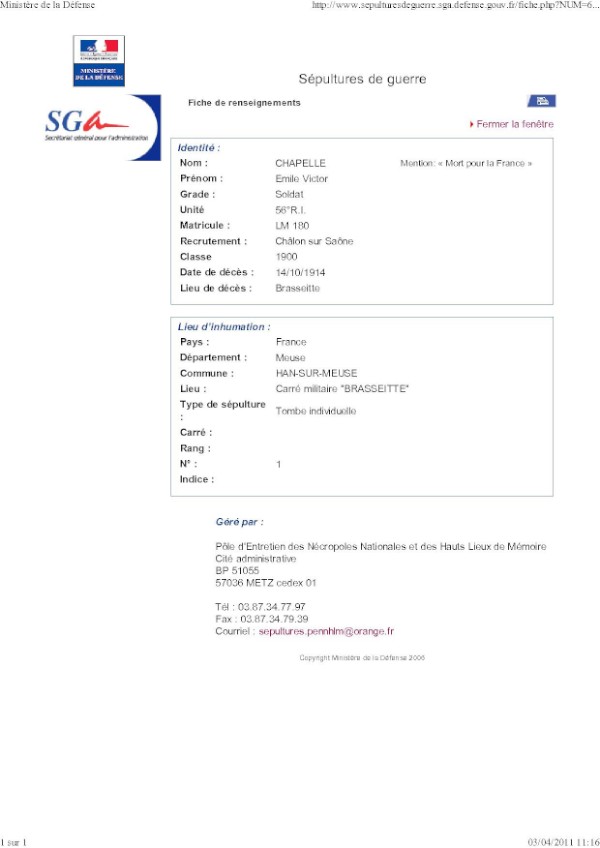 Sépulture : Carré militaire Brasseitte à Han-sur-Meuse (55)