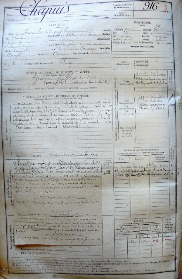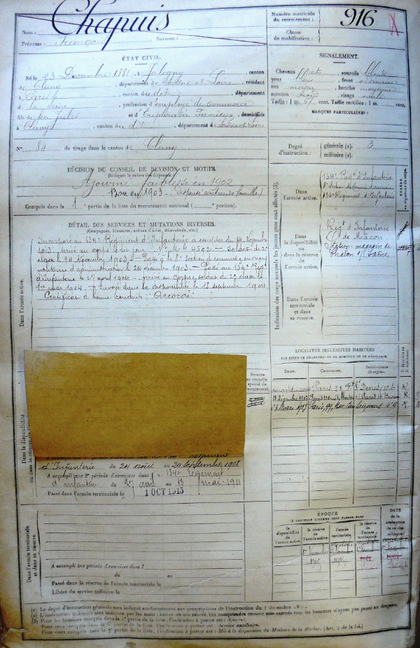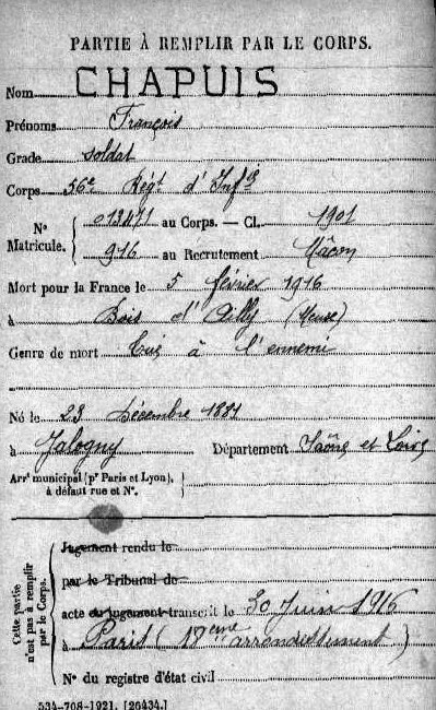 Epouse : Mme Vve CHAPUIS LIPRAIN(a)