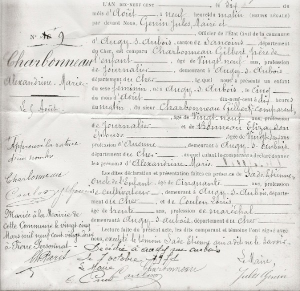 Lieu de naissance : Augy-sur-Aubois