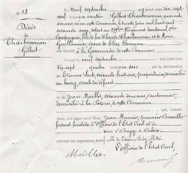 Lieu de décès : Augy-sur-Aubois