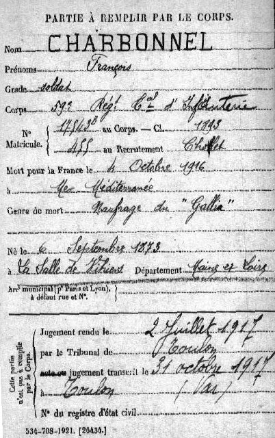 Epouse : Mme Vve CHARBONNEL née CHARBONNEL Marie Jeanne