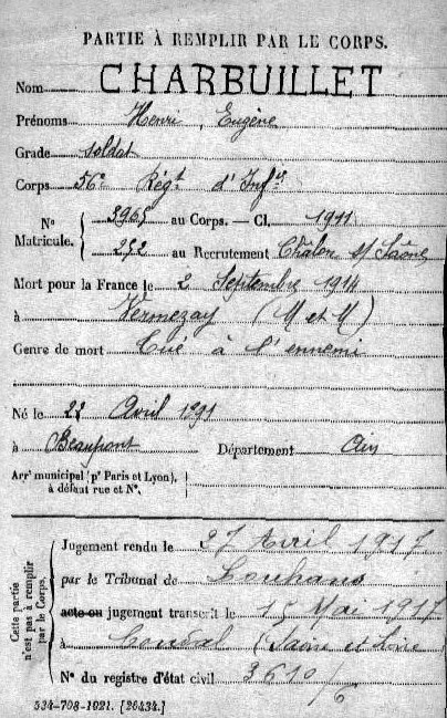 Genre de décès : Tué à l`ennemi