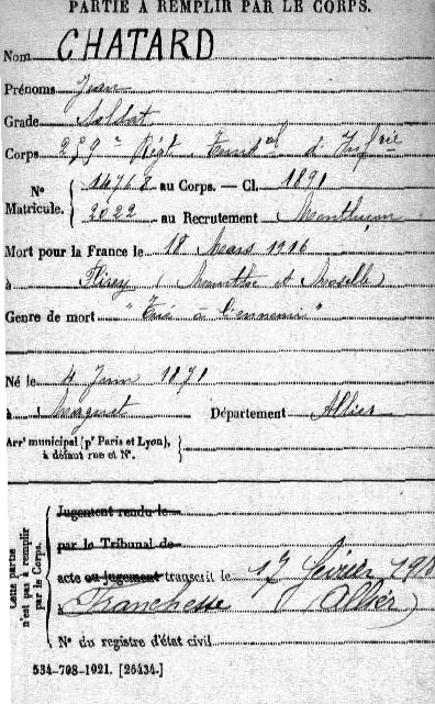 Genre de décès : Tué à l`ennemi