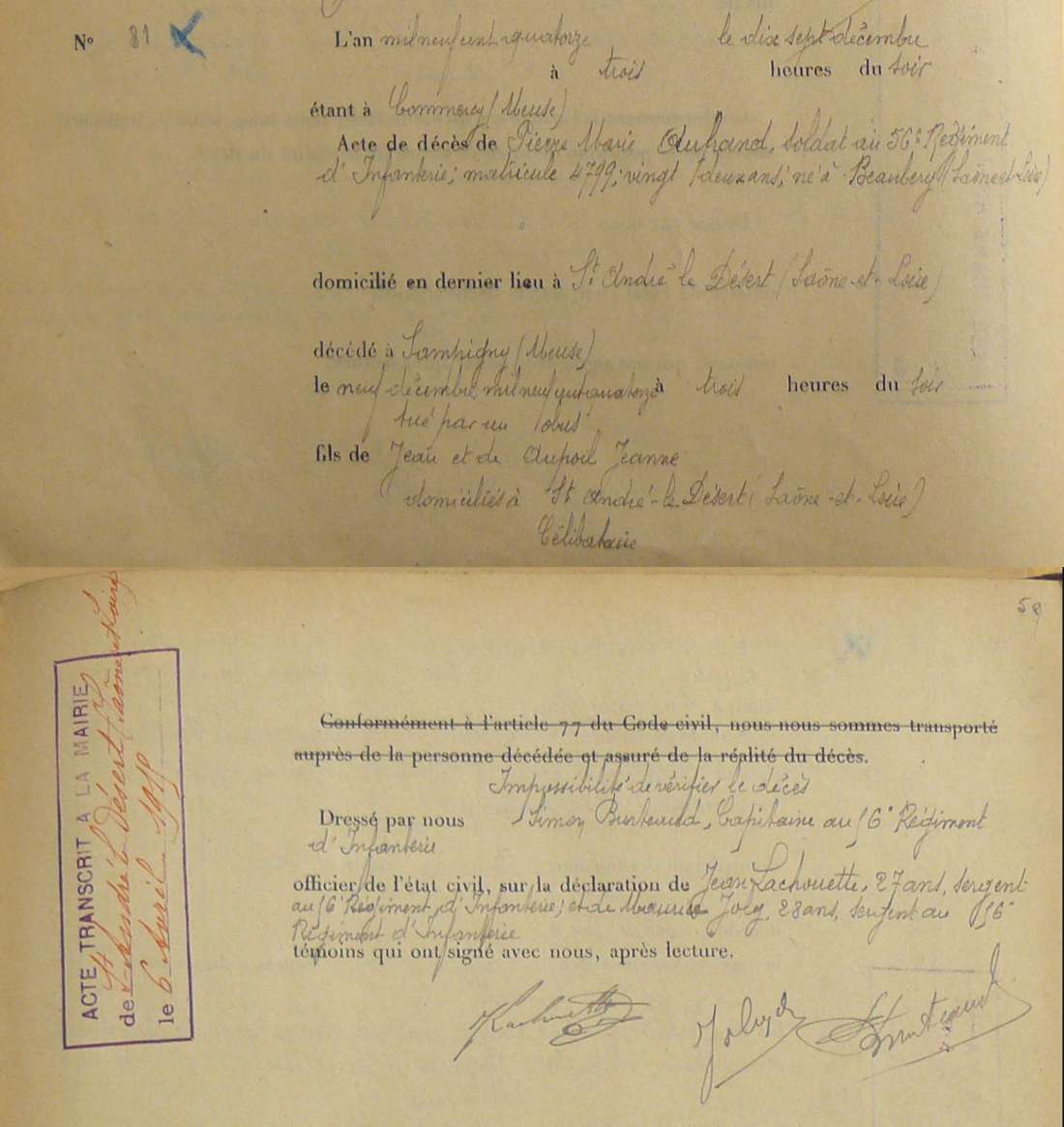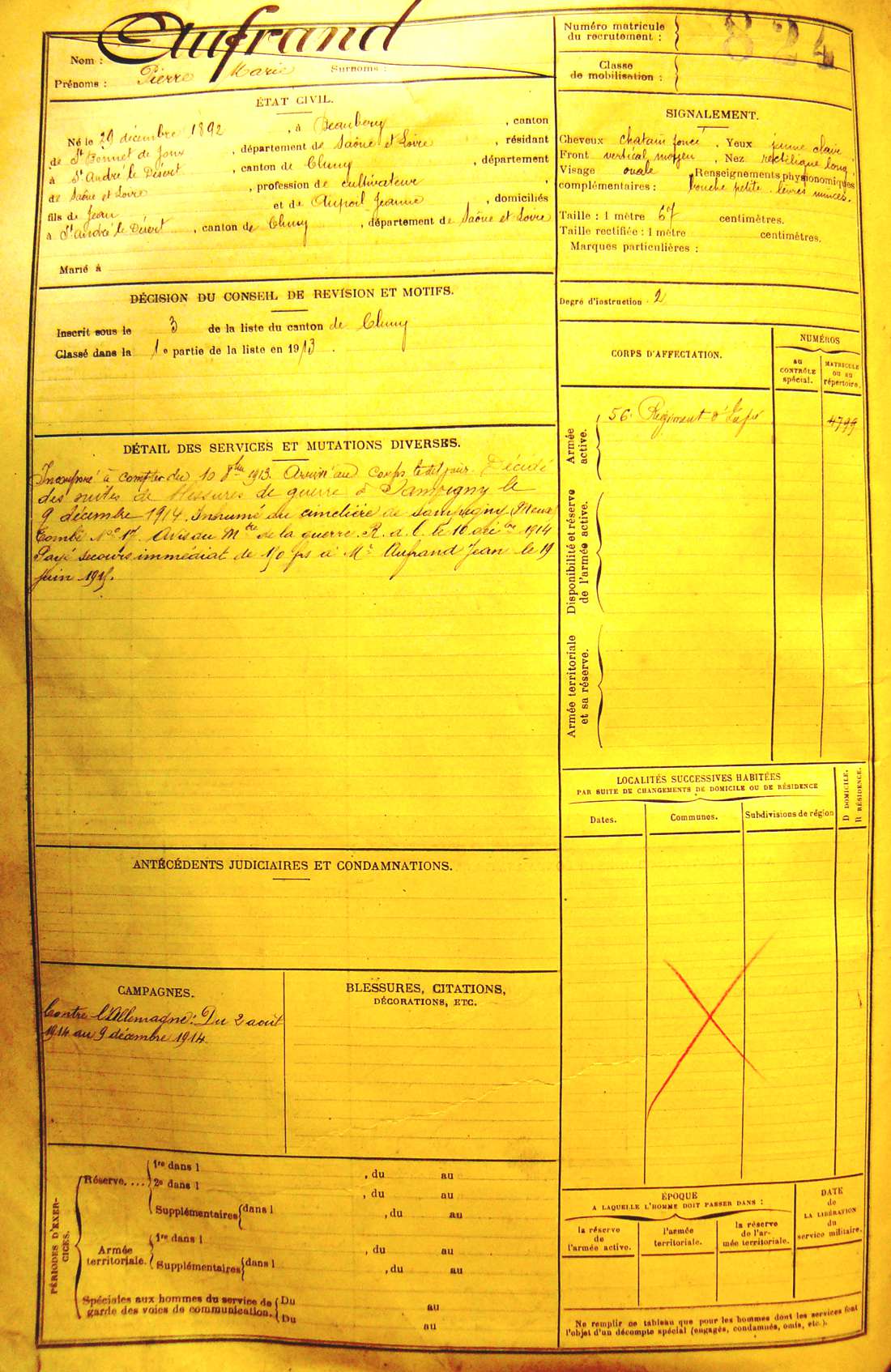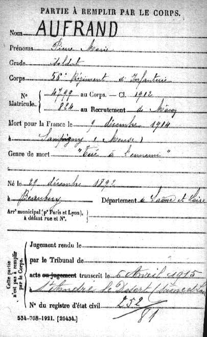 Payé secours immédiat de 150 F à M. AUFRAND Jean le 19/06/1915