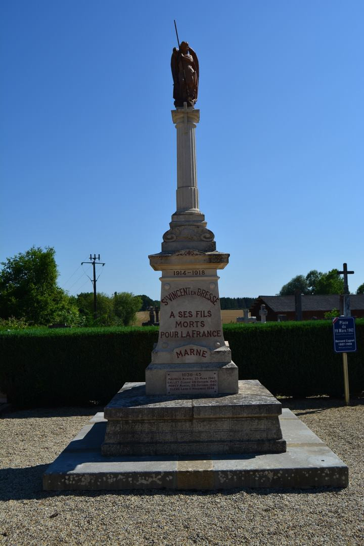 Inscription sur le monument : Saint-Vincent-en-Bresse (71) et Saint-Étienne-en-Bresse (71)