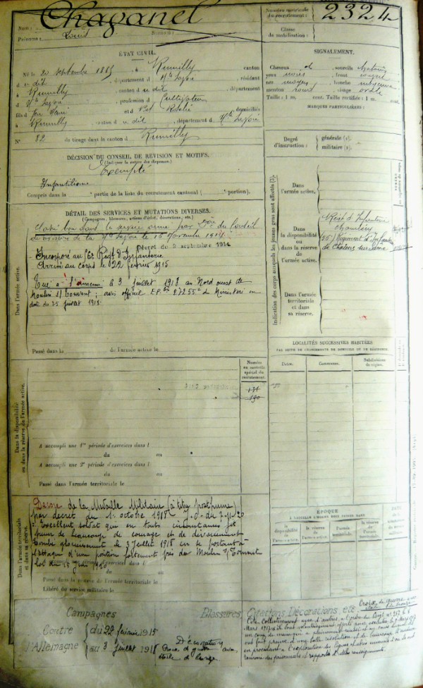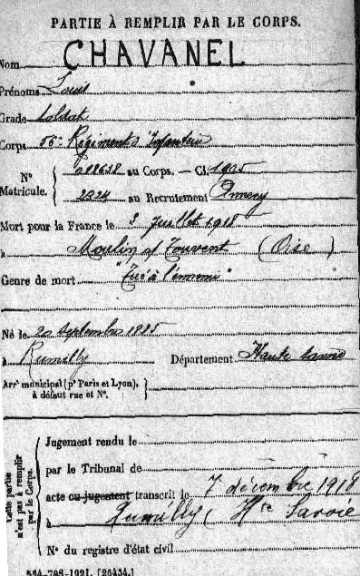 Epouse : Mme Vve CHAVANEL née VINCENT Antoine Louis