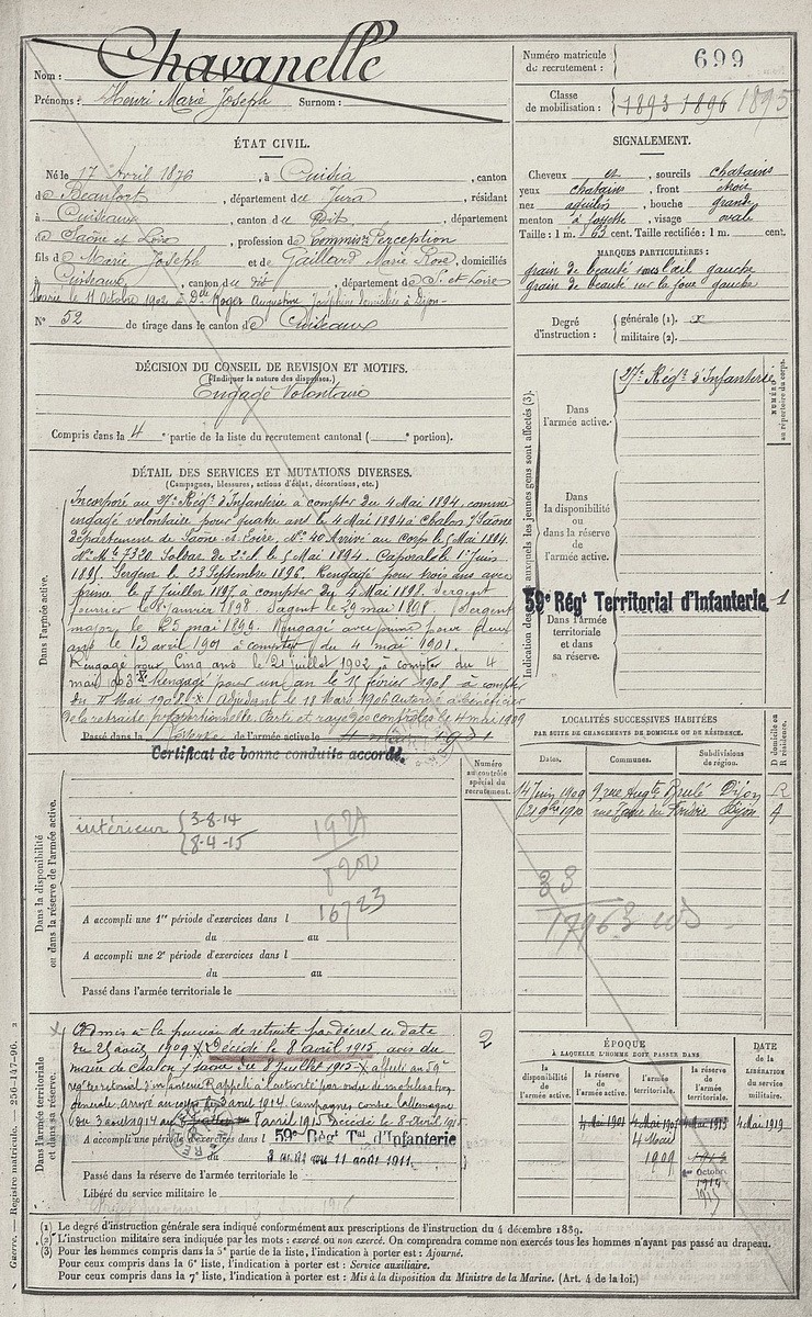 Sur la fiche matricule le matricule est 699 et sur la fiche MDH c'est 877.