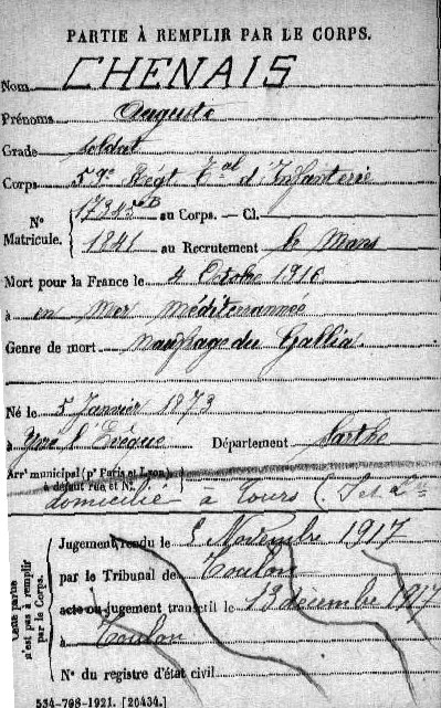 Epouse : Mme Vve CHENAIS née LECHALLE