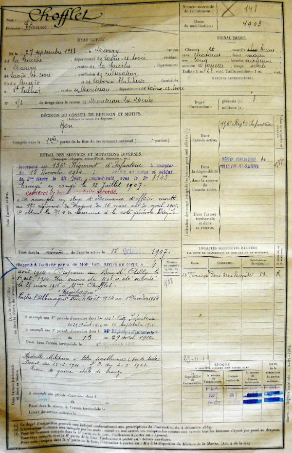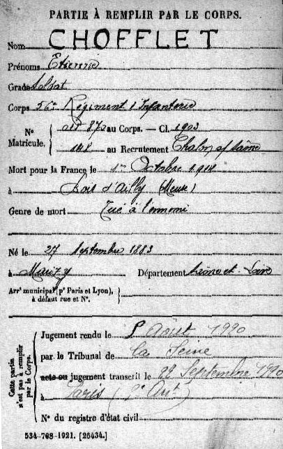 Epouse : Mme Vve CHOFFLET née SEVE Adrienne