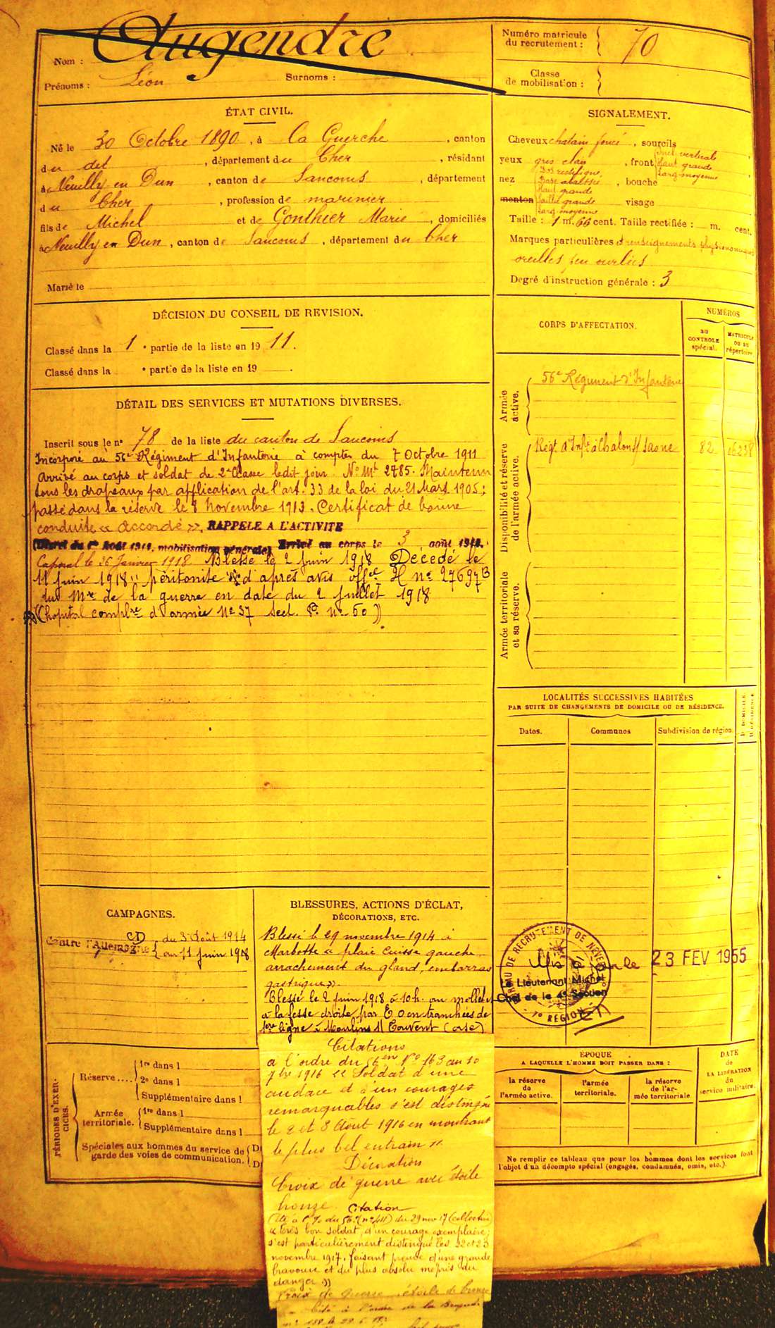 Régiment : 56ème R.I.