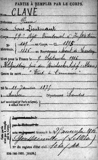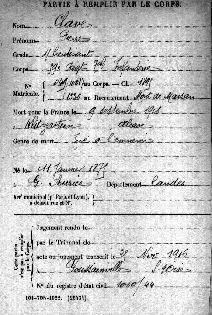 Epouse : Mme Clavé-Tournier (Epouse veuve non remariée)