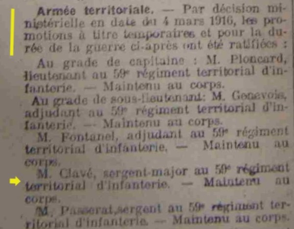 Avis de nomination de Sergent/Major (ou Adjudant, suivant l'article) à Sous/Lieutenant = Courrier de S&L du 07-05-1915 et du 14-03-1916