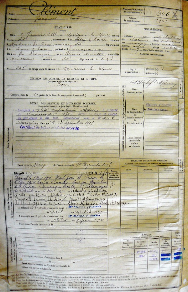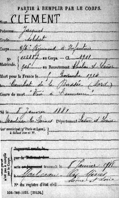 Marié à Montceau-les-Mines (71) le 17/04/1909 avec DALVAL Marguerite Léontine Avis DC = Courrier de S&L non daté
