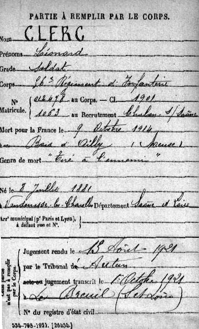 Genre de décès : Tué à l'ennemi (Porté disparu)