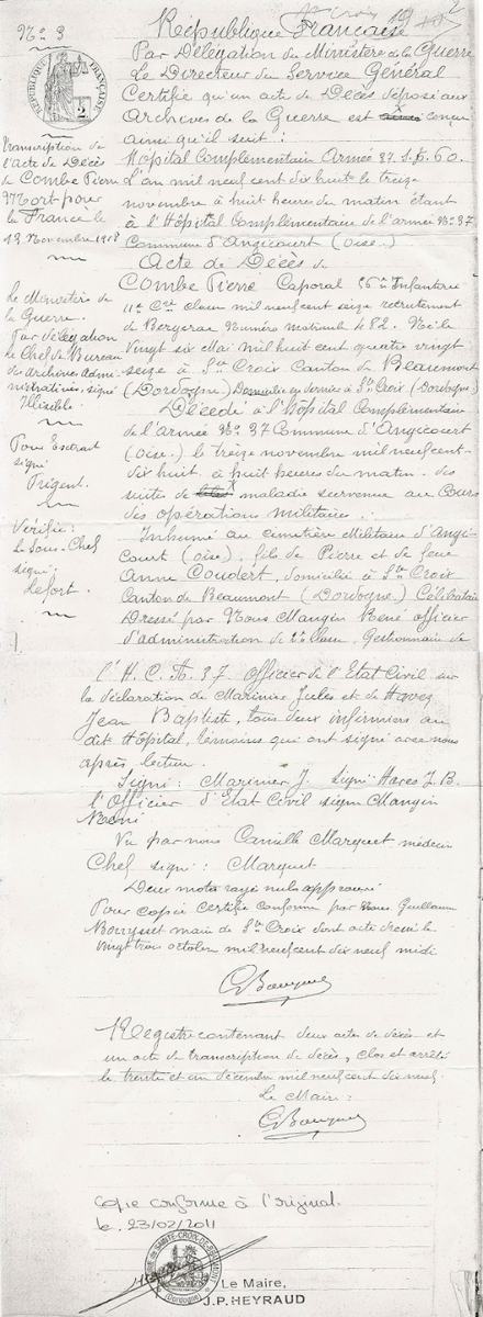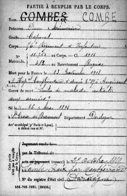 Lieu précis de décès : Hôpital complémentaire des Armées n° 37