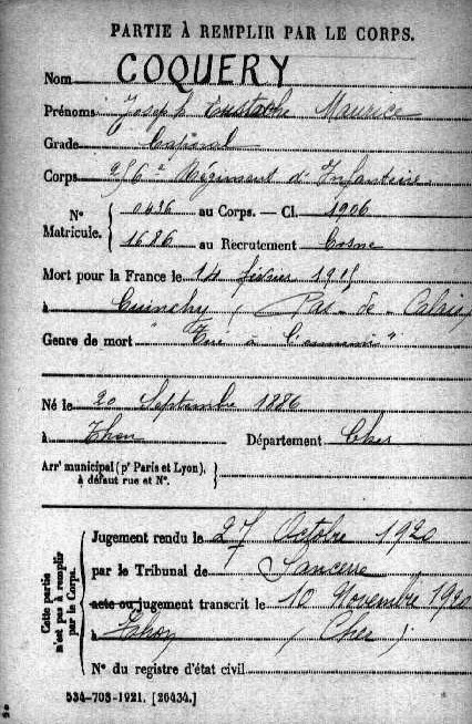 Genre de décès : Tué à l`ennemi
